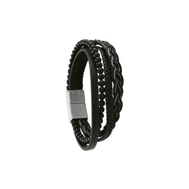 Bracelet Jourdan Bijoux Hercule en cuir, acier et perles naturelles noires