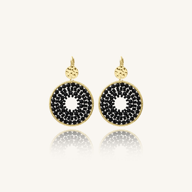 Boucles d'oreilles Sàntibé Bijoux Maxi Paradis en laiton, métal doré et perles noir