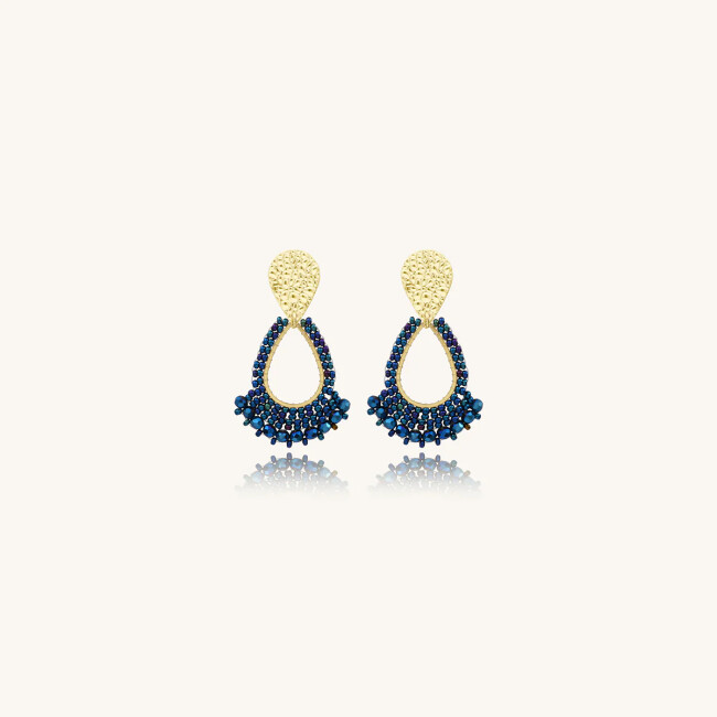Boucles d'oreilles Sàntibé Bijoux Mini Rio en laiton, métal doré et perles bleu marine