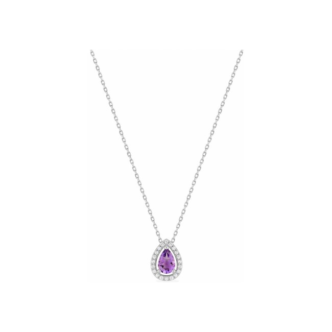 Collier en or blanc, améthyste et diamant 0.08ct