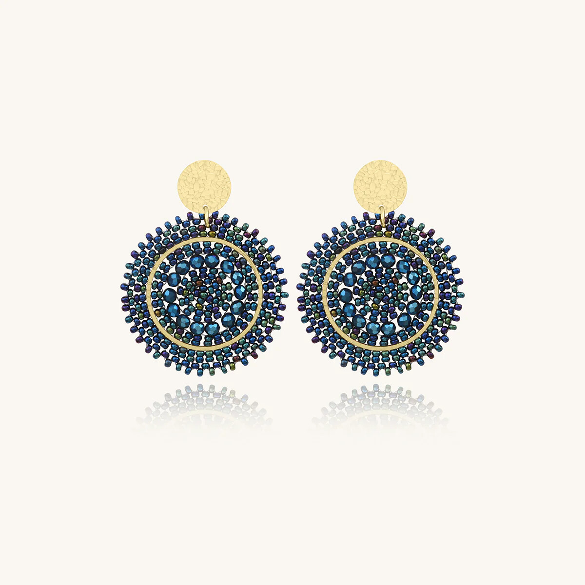 Boucles d'oreilles Sàntibé Bijoux Mini Espagnola en laiton, métal doré et perles bleu marine