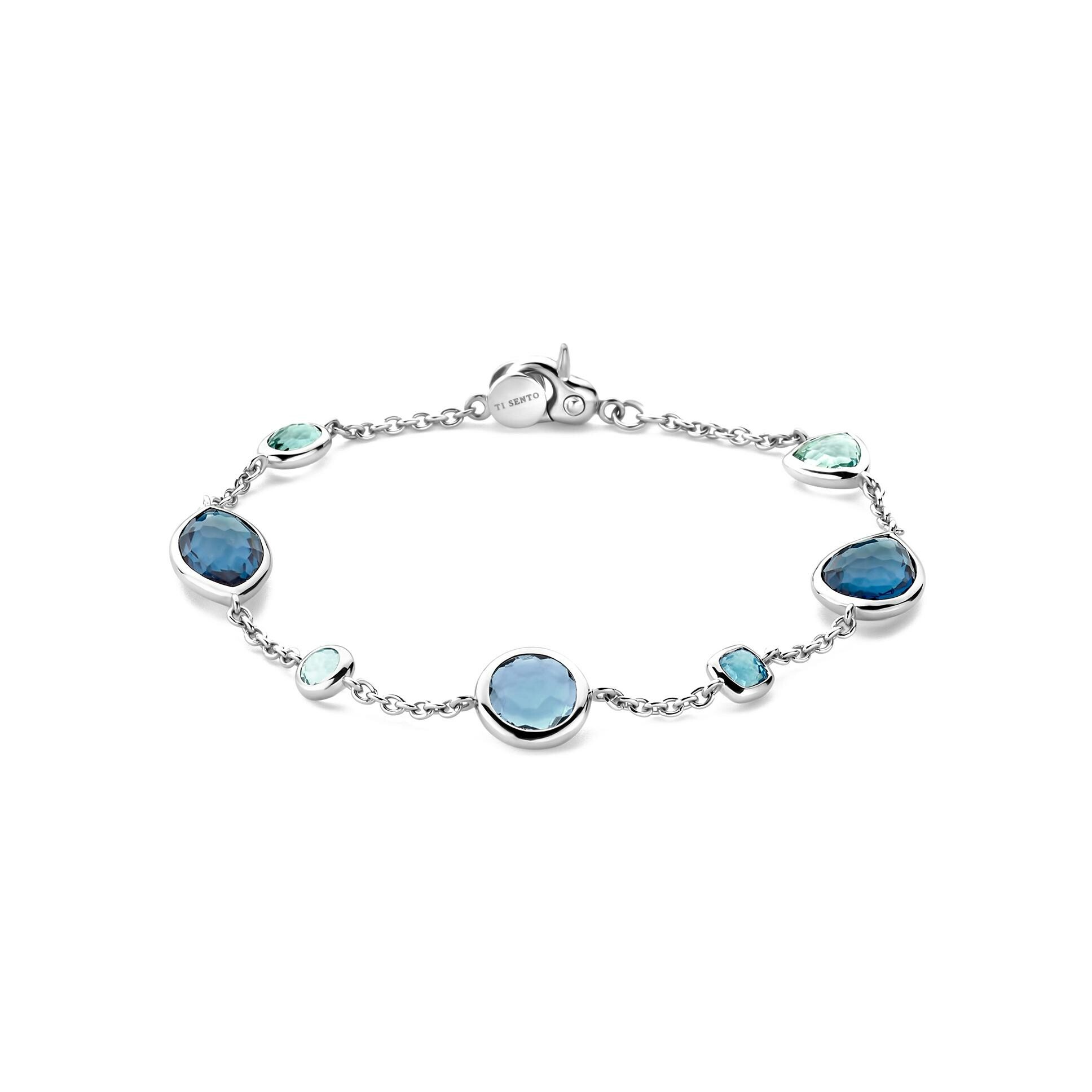 Bracelet Ti Sento en argent plaqué platine et cristal synthétique bleu