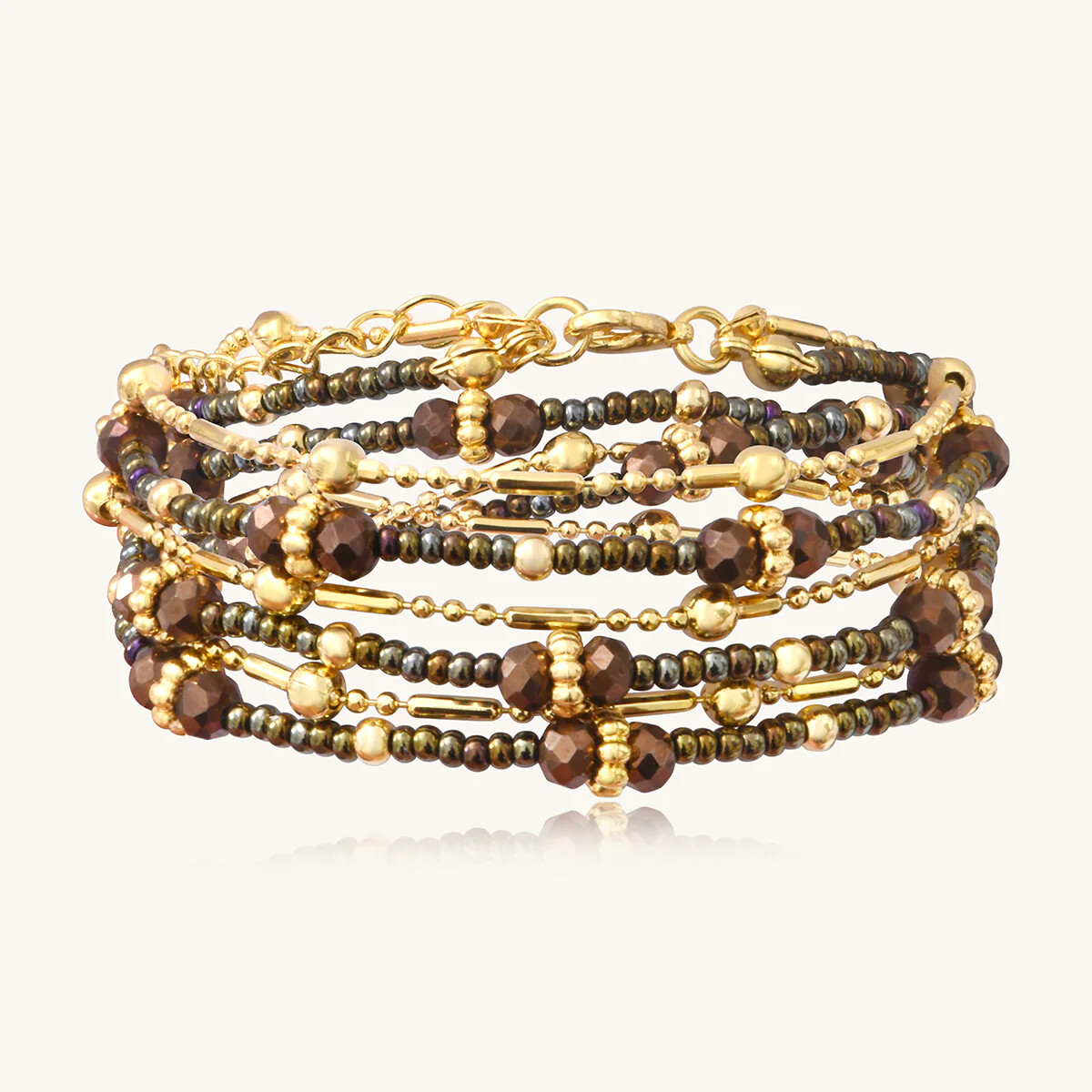 Collier-Bracelet Sàntibé Bijoux Divine en laiton, métal doré et perles noisette