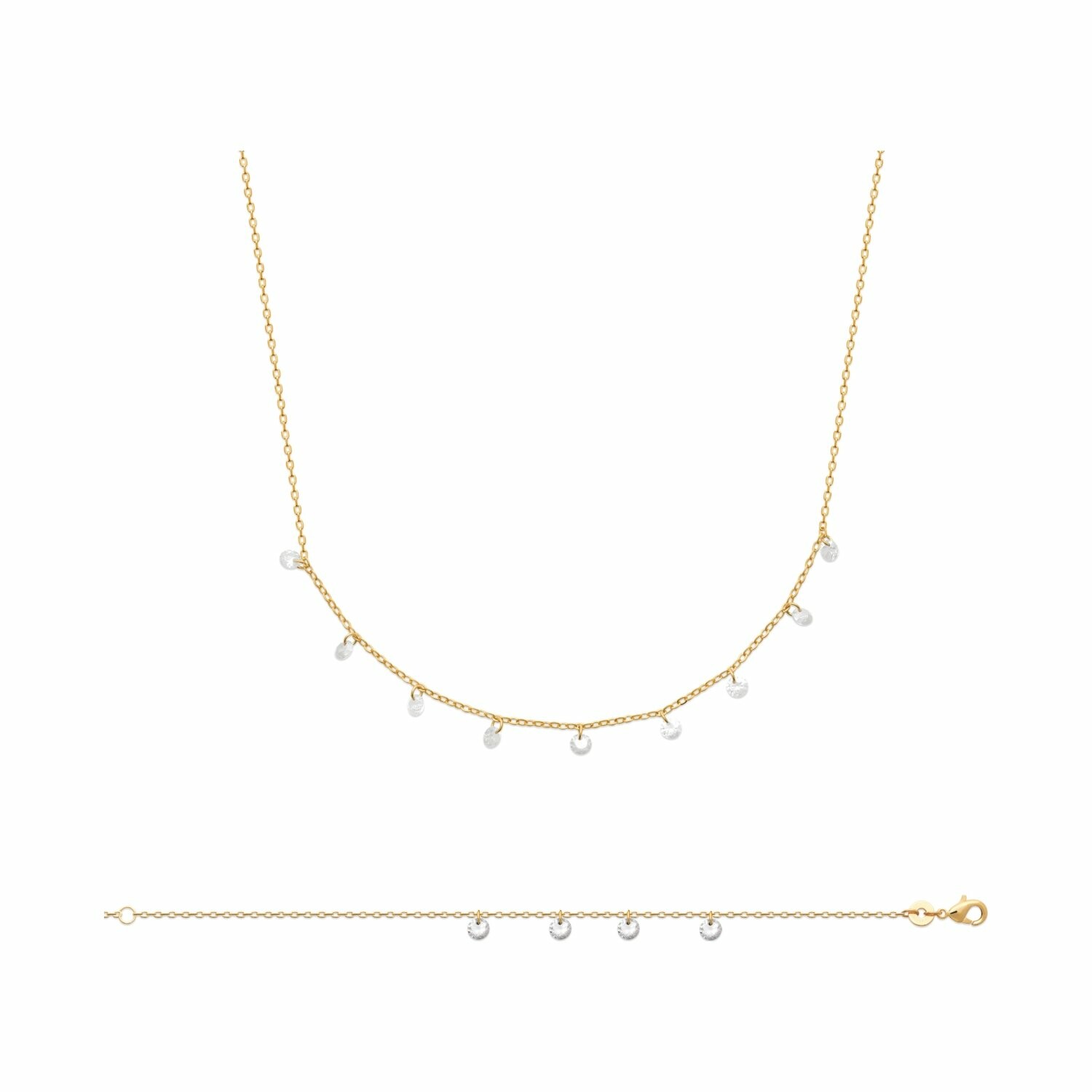 Collier en plaqué or et oxydes de zirconium, 45cm